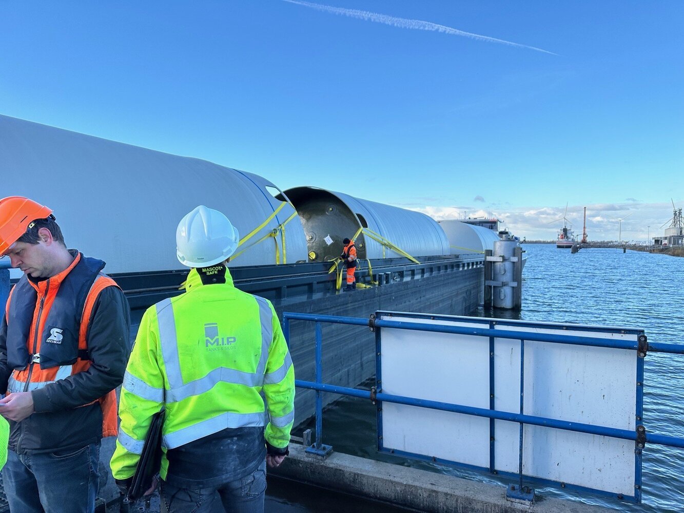 Grâce à notre implantation au bord de l’eau et à notre expertise logistique, nous pouvons gérer efficacement et en toute sécurité des projets de cette envergure. Nous transportons des cuves jusqu’à 14 mètres de diamètre et plus de 30 mètres de longueur, de manière durable et rentable, vers des clients dans toute l’Europe.
