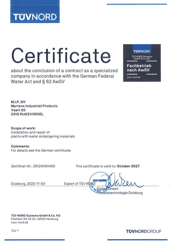 Alle M.I.P.-opslagsystemen voldoen aan de normen en richtlijnen voorgeschreven in onder andere DIN 18820 & DIN 1055 voor composiet en EN 13121 voor tanks. Onze productiemethodiek is conform EN 1090-1 en EN 1090-2 voor staal & DIN 6600-serie voor RVS producten.